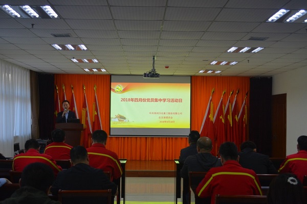 2018年4月18日下午,鄭州萬達(dá)重工股份有限公司黨總支在集團(tuán)綜合樓二樓黨建基地開展了2018年度4月份“黨員集中活動(dòng)日”活動(dòng)。黨總支全體黨員、入黨積極分子、入黨申請人共有40余人參加了此次活動(dòng)。