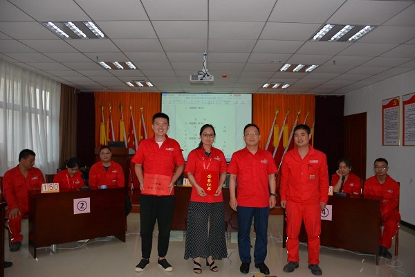 競賽圍繞黨的十九大精神、習(xí)近平新時代中國特色社會主義思想、《黨章》、公司企業(yè)文化、學(xué)習(xí)強國等內(nèi)容開展知識問答。必答題、搶答題、風(fēng)險題、觀眾搶答題等知識環(huán)節(jié)設(shè)置,使得整場比賽氣氛熱烈,各代表隊陣容齊整,斗志昂揚,才思敏捷,在必答題環(huán)節(jié)就進(jìn)入了激烈比拼,各隊比分交替上升,參賽選手對黨章、黨史、國史、企業(yè)文化等諸多題目對答如流。最終,經(jīng)過激烈的角逐,黨總支第三黨小組獲得本次競賽第一名,第五黨小組獲二名,第四黨小組獲三名。