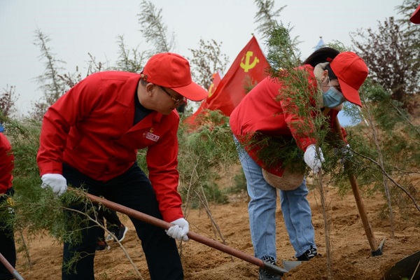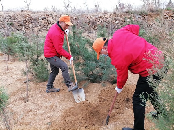 栽下棵棵樹苗,留下一片新綠。植樹現(xiàn)場(chǎng)黨旗、司旗、黨小組旗幟在風(fēng)中迎風(fēng)飄揚(yáng),植樹活動(dòng)中,一派緊張有序、熱火朝天的勞動(dòng)景象,大家個(gè)個(gè)態(tài)度積極、熱情高漲、干勁十足,揮鍬挖坑、運(yùn)送樹苗、扶植苗木、培實(shí)新土、提桶澆灌,大家比干勁、比質(zhì)量,各個(gè)環(huán)節(jié)銜接有序,樣樣做得認(rèn)真到位,大家樂在其中,配合默契,真正是勁往一處使、汗往一處流,一株株樹苗迎風(fēng)挺立,展現(xiàn)出勃勃生機(jī)。經(jīng)過熱烈有序的植樹勞動(dòng),共栽植側(cè)柏、油松苗木200余棵,順利完成了義務(wù)植樹任務(wù)。