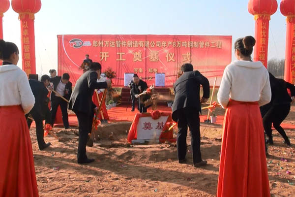 2014年12月2日,在公司二期工程建設(shè)項(xiàng)目工程現(xiàn)場隆重舉行鄭州萬達(dá)管件制造有限公司年產(chǎn)80000噸鋼制管件工程開工奠基儀式。它的開工建設(shè),標(biāo)志著鄭州萬達(dá)的發(fā)展又掀開了嶄新的一頁,又昂首步入了更加廣闊的新天地,必將對(duì)公司的發(fā)展產(chǎn)生重大而深遠(yuǎn)的影響。