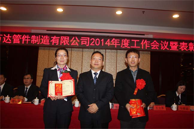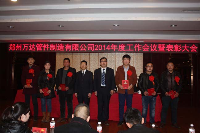 鄭州萬達(dá)管件制造有限公司2014年年會(huì)于2015年1月20日隆重召開。會(huì)議首先表彰了公司2014年度先進(jìn)工作者、先進(jìn)部門及班組、優(yōu)秀干部、年度進(jìn)步之星、銷售冠軍、優(yōu)秀黨員等十余個(gè)獎(jiǎng)項(xiàng),并對(duì)獲獎(jiǎng)?wù)哳C發(fā)了獎(jiǎng)金和證書。公司董事長(zhǎng)、黨委書記何清同志在會(huì)議上做了題為《適應(yīng)新常態(tài) 開創(chuàng)新局面 實(shí)現(xiàn)公司持續(xù)健康穩(wěn)定發(fā)展 》的報(bào)告,總結(jié)了2014年公司的發(fā)展歷程,取得的成績(jī)和不足,展望和部署2015年公司發(fā)展的目標(biāo)和重點(diǎn)工作,為公司全力建設(shè)五位一體的萬達(dá)事業(yè)指明了努力方向。公司全體人員中午舉行了盛大的團(tuán)拜招待會(huì),歡聚一堂,其樂融融。
