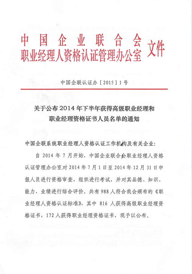 熱烈祝賀我公司劉保國等6位同志獲得職業(yè)經(jīng)理人資格證書