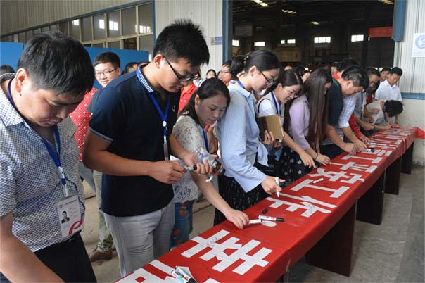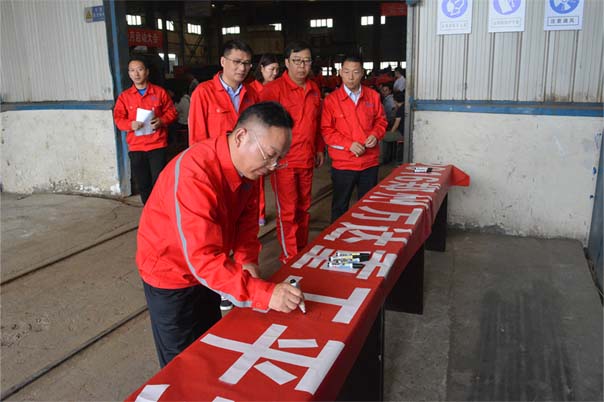 會后,公司領(lǐng)導(dǎo)及全體員工在“2016鄭州萬達(dá)重工平安工作•幸福生活”安全條幅上簽字留念。