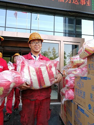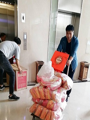 今天下午15:30,在萬達重工行政樓一樓大廳,人力行政中心為全體員工發(fā)放了載滿祝福的中秋禮品:每人一盒七星伴月月餅,祝福著萬達家人闔家團圓、幸福美滿;一桶多力葵花籽食用油、一袋大米,希望萬達家人家庭和諧、幸福美滿。以部門為單位進行領(lǐng)取,大家有的手提、有的肩扛、有的一起合力抬,萬達個個臉上洋溢著喜悅之情,現(xiàn)場呈現(xiàn)出一片喜氣洋洋、熱鬧非凡的景象。