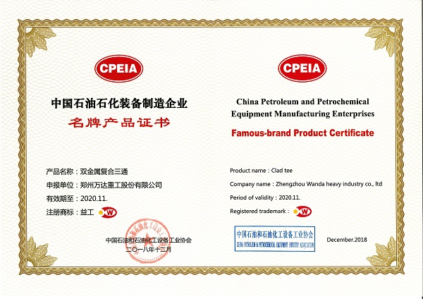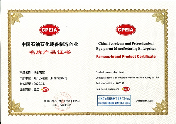鄭州萬達重工股份有限公司榮獲“中國石油石化裝備制造企業(yè)名牌產(chǎn)品證書”