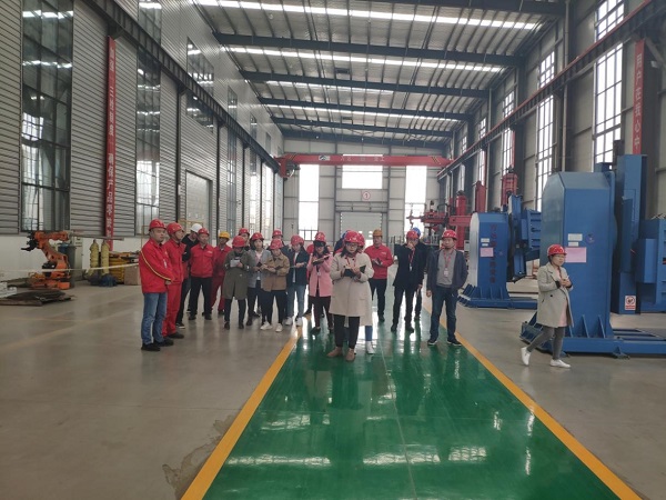 參觀期間,生產(chǎn)調(diào)度范樹均對公司產(chǎn)品進行現(xiàn)場教學(xué)。他帶領(lǐng)大家先后參觀了堆焊車間、物流通道、生產(chǎn)管理部各車間,現(xiàn)場向大家介紹了公司產(chǎn)品名稱、產(chǎn)品性能,著重介紹了產(chǎn)品的生產(chǎn)工藝流程和生產(chǎn)設(shè)備。