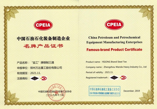 熱烈祝賀鄭州萬達重工股份有限公司榮獲“中國石油石化裝備制造企業(yè)名牌產(chǎn)品”證書