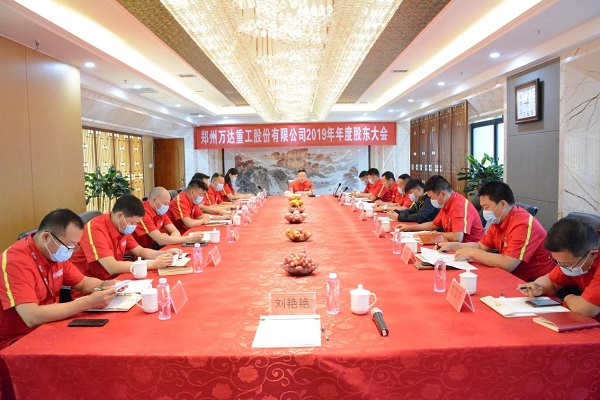 2020年6月16日上午九點整,鄭州萬達(dá)重工股份有限公司2019年度股東大會在公司行政樓8樓貴賓室召開。公司董事長、書記何清,董事、總經(jīng)理張付峰,監(jiān)事會主席于江山與各股東、董事、監(jiān)事參加會議。