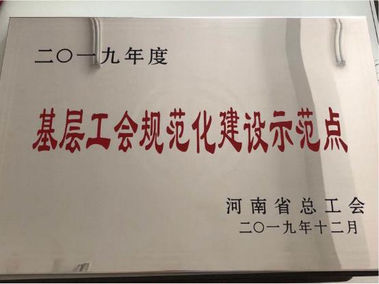 鄭州萬達重工股份有限公司工會榮獲河南省“2019年度基層工會規(guī)范化建設示范點”稱號