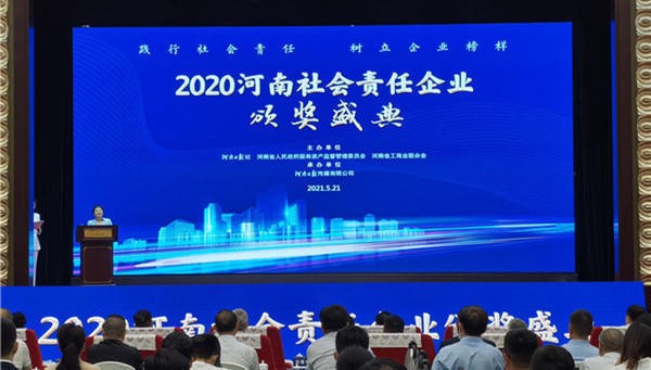 2021年5月21日下午,由河南日報(bào)社、河南省國資委、河南省工商業(yè)聯(lián)合會(huì)聯(lián)合主辦,河南日報(bào)傳媒有限公司承辦的“2020河南社會(huì)責(zé)任企業(yè)推選活動(dòng)頒獎(jiǎng)典禮”在鄭州黃河迎賓館隆重舉行。