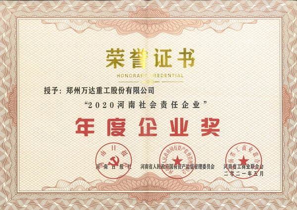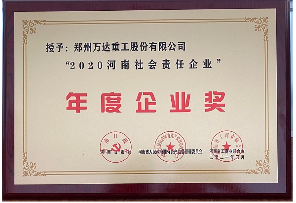熱烈祝賀鄭州萬達(dá)重工股份有限公司榮獲“2020河南社會(huì)責(zé)任企業(yè)”年度企業(yè)獎(jiǎng)