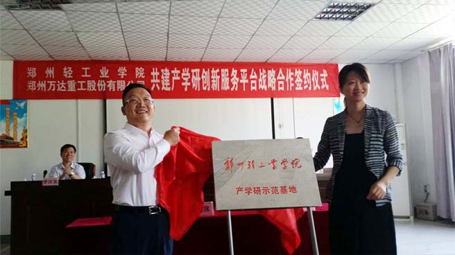 鄭州萬達重工股份有限公司----鄭州輕工業(yè)學院 共建產(chǎn)學研創(chuàng)新服務(wù)平臺戰(zhàn)略合作簽約揭牌儀式