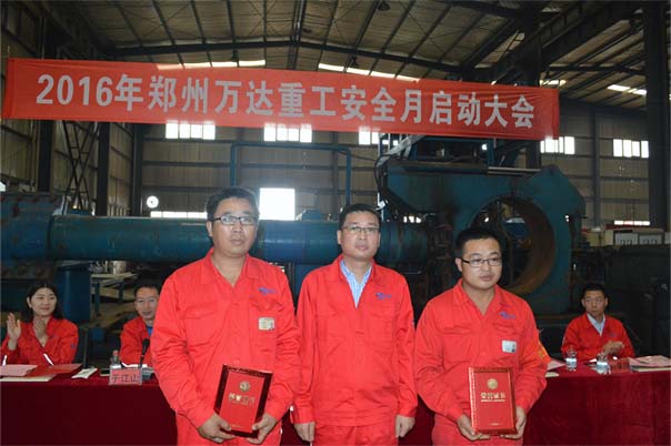 早上八點整,萬達重工“2016安全月啟動大會”在公司公司一線----生產(chǎn)車間圓滿隆重召開。公司董事長、書記何清做《強化安全發(fā)展理念、提升全員安全素質(zhì)》講話,公司總經(jīng)理張付峰宣讀了《2016年“公司安全月”活動實施方案》,公司總工程師、安全領導小組執(zhí)行組長袁希海作《公司上半年安全報告》講話,公司控股公司、子公司、生產(chǎn)方陣、營銷方陣、行政方陣分別派代表做會議發(fā)言。在安全月啟動大會上,對公司2015年7月-2016年6月安全生產(chǎn)管理優(yōu)秀班組(機修電工班、無損檢測班)進行了表彰,并且優(yōu)秀班組代表進行了經(jīng)驗分享。