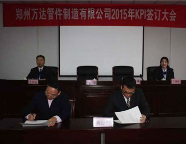 2016/01/28 390 鄭州萬(wàn)達(dá)管件制造有限公司2015年KPI簽訂會(huì)于1月30號(hào)在公司行政區(qū)會(huì)議室隆重舉行,公司班長(zhǎng)以上所有管理人員參加了此次簽訂會(huì)議。簽訂會(huì)分為三級(jí)簽訂,即:董事長(zhǎng)與總經(jīng)理簽訂、總經(jīng)理與公司各高管簽訂、公司各高管與分管的各部門負(fù)責(zé)人簽訂,近期,各部門負(fù)責(zé)人將部門的KPI指標(biāo)進(jìn)行分解,與各班組及相關(guān)崗位簽訂目標(biāo)責(zé)任書,達(dá)到千...